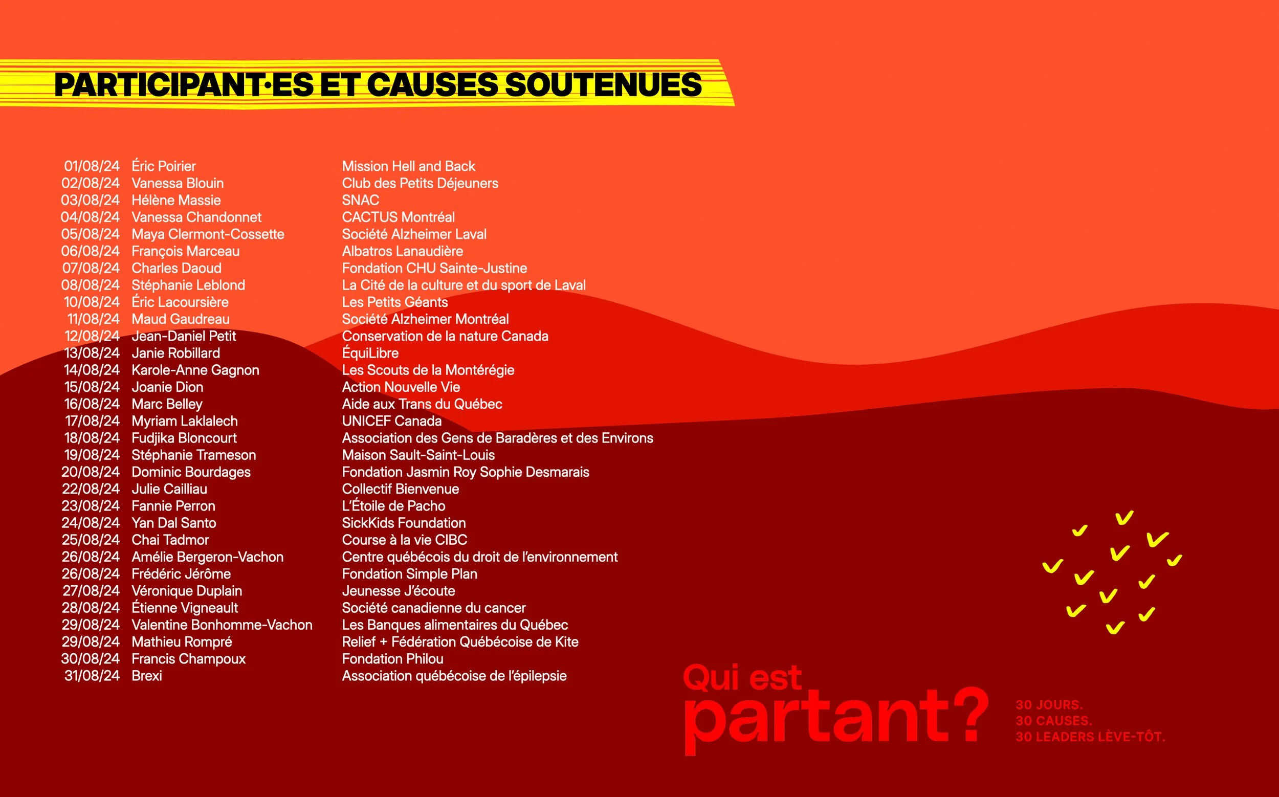 L’initiative matinale n’a pas tardé à marquer l’imaginaire et continue à générer des retombées étonnantes plusieurs mois après sa conclusion. Les statistiques officielles pour août 2024: 32 causes soutenues, 314 km parcourus, au-delà de 75 000 impressions générées et plus de 60 nouveaux contacts LinkedIn à rencontrer.
