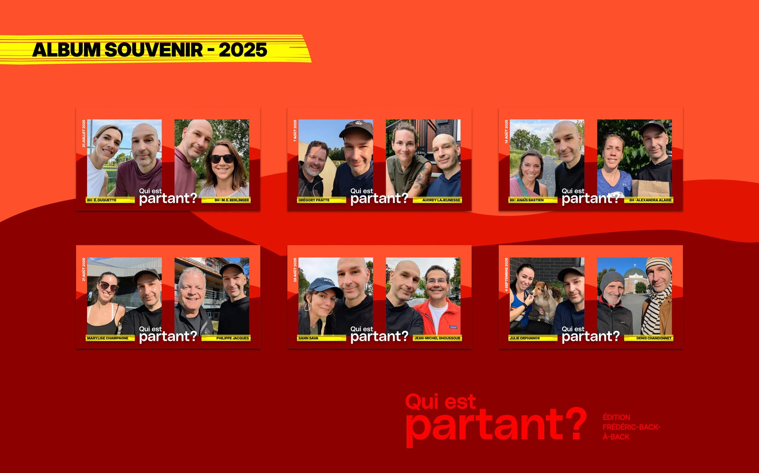 En 2025, le projet est de retour en formule condensée. Chaque jeudi dès 6h00 am, deux parcours de 10 000 pas sont complétés tour à tour avec autant d’invité·es. C’est l’édition « Frédéric-Back-à-Back » !