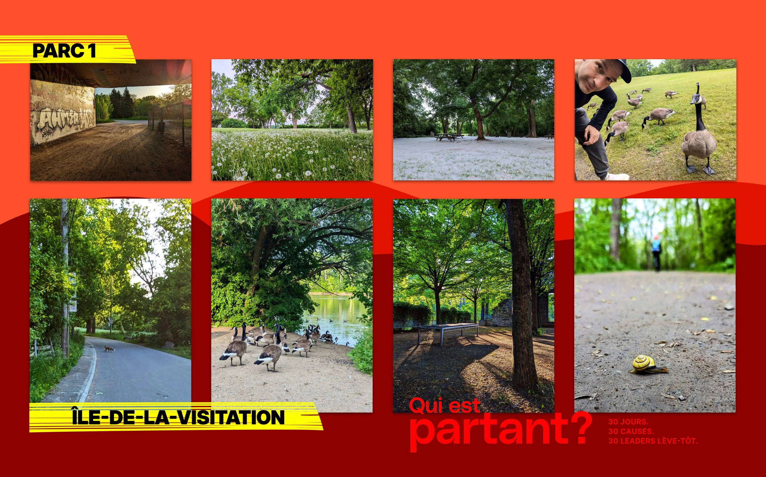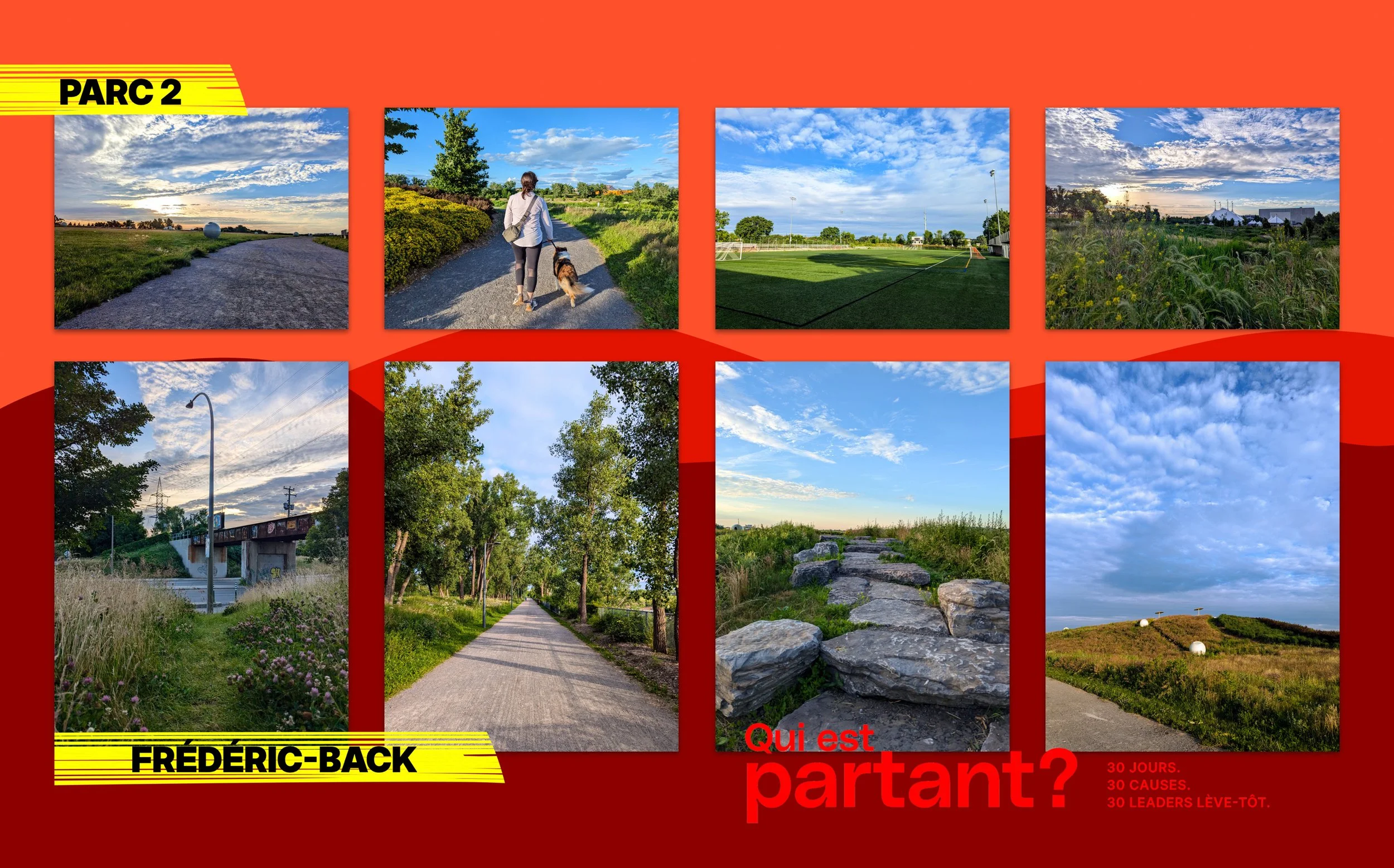 Contraint à se réveiller chaque jour à l’aurore pour administrer un anticonvulsivant à son chien épileptique, Hughes Chandonnet a pris l’habitude de partir marcher dès 6h00 am dans les parcs d’Ahuntsic. En août 2024, dans un esprit de réseautage santé, il met ses contacts au défi de partager cette expérience quotidienne avec lui.